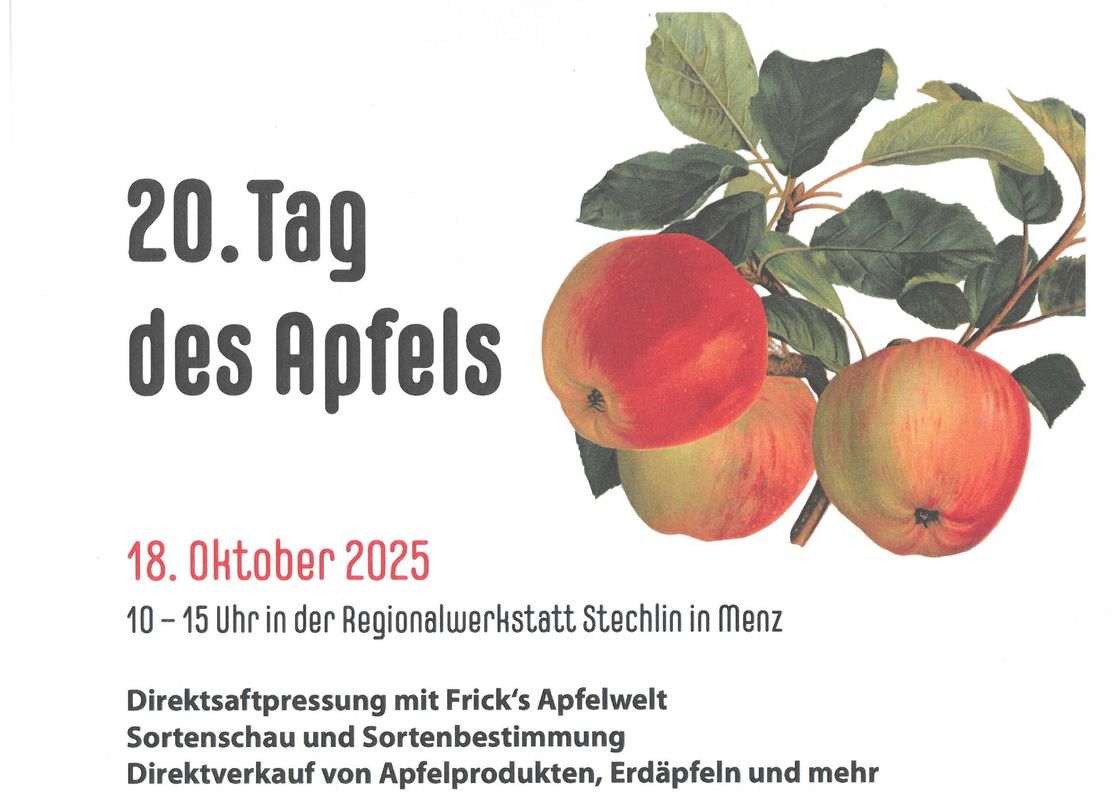 Eine Veranstaltung mit Tradition feiert Geburtstag. „20 Jahre Menzer Apfeltag“, unter diesem Motto wird am 18.10.2025 von 10:00 bis...